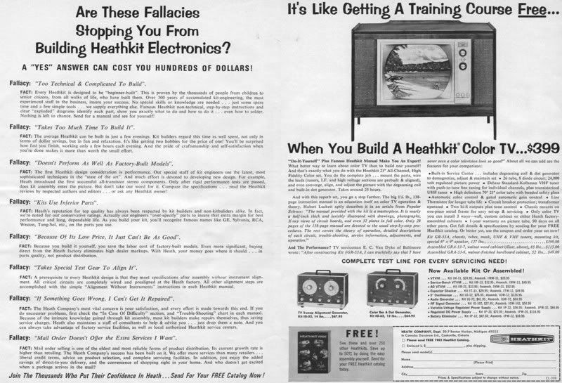 That's an interesting Heathkit ad... "Too Technical", no, "Takes Special Test Gear", no, but then the ad has a big list of test instruments you can also order. ;)