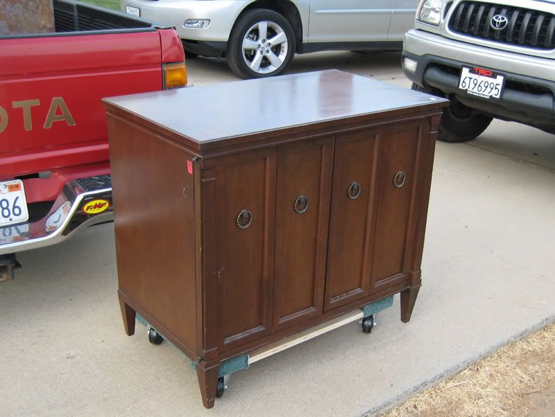 Today I got a call from another TV collector here in the LA area, who found this nice high-end Zenith at a garage sale in Encino, and also a Motorola 23" combo (in another thread)... He has no room for any more sets since he has about 400 (I won't say the name, but most locals know who I'm talking about :) ) So he offered the lead to me, and I happened to be in the Valley after a brunch that Kay and I went to. So I made a deal with Kay: She gets to go shopping at Old Navy, and I get to go to a garage sale to look at an old TV :thmbsp:
