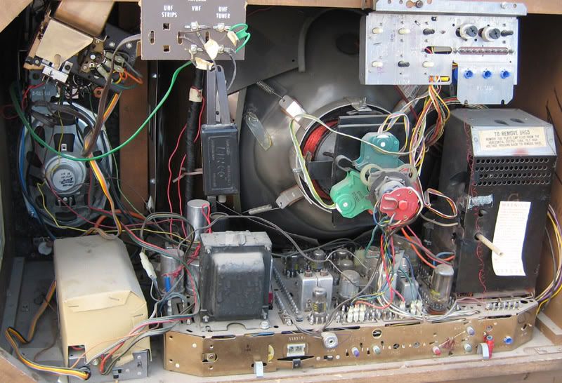 I went and met the other collector at the sale, and I got the Zenith for $15. The remote is missing, but other than that, it's a very nice set! I have a spare Space Command 600 for it, so I'm in business. I haven't Variac'ed it up yet, but the seller said his Dad used it up til the 90s when they got a big screen. I believe it because it has some Phillips-ECG tubes in it. And the CRT was replaced in the 80s with a local rebuilt. More details when I get a chance to check it out! Charles http://i104.photobucket.com/albums/m...withDoors3.jpg http://i104.photobucket.com/albums/m...withDoors4.jpg http://i104.photobucket.com/albums/m...withDoors2.jpg http://i104.photobucket.com/albums/m...withDoors1.jpg |