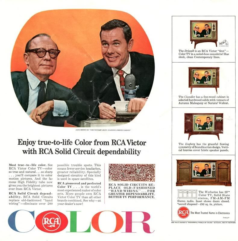 That was right when James Aubrey threw Jack Benny off of CBS and he went over to NBC. Otherwise he would never have appeared in an ad for RCA!