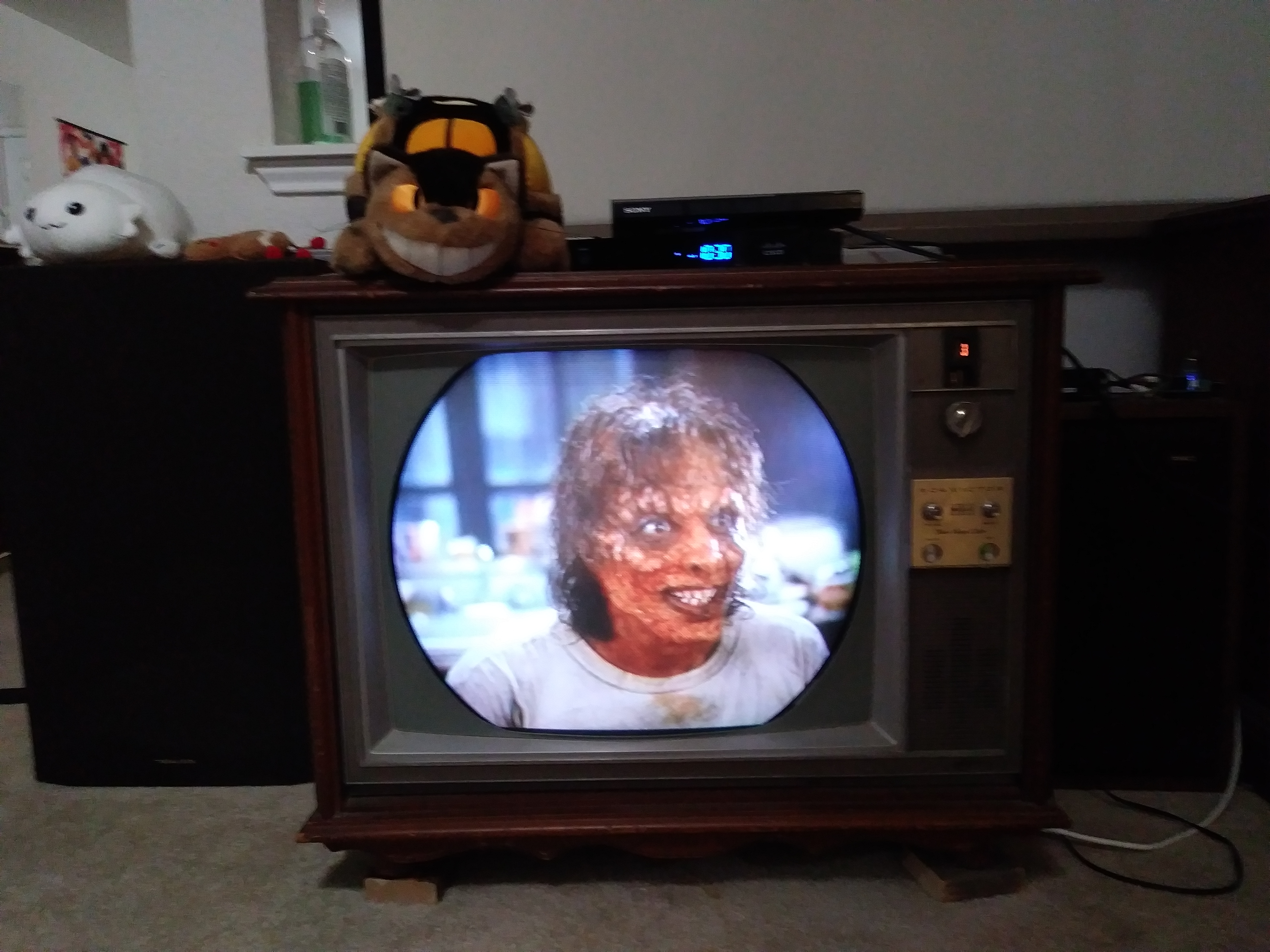 I remember one year I had a rusted out metal CTC-16 with a tube on a brightener (Had a good tube but I bought the set as a tube donor and stuck a bad one back in) and I set it on the porch playing 50s horror films one Halloween. Nobody trick-or-treats here so I wonder if anyone even noticed...
