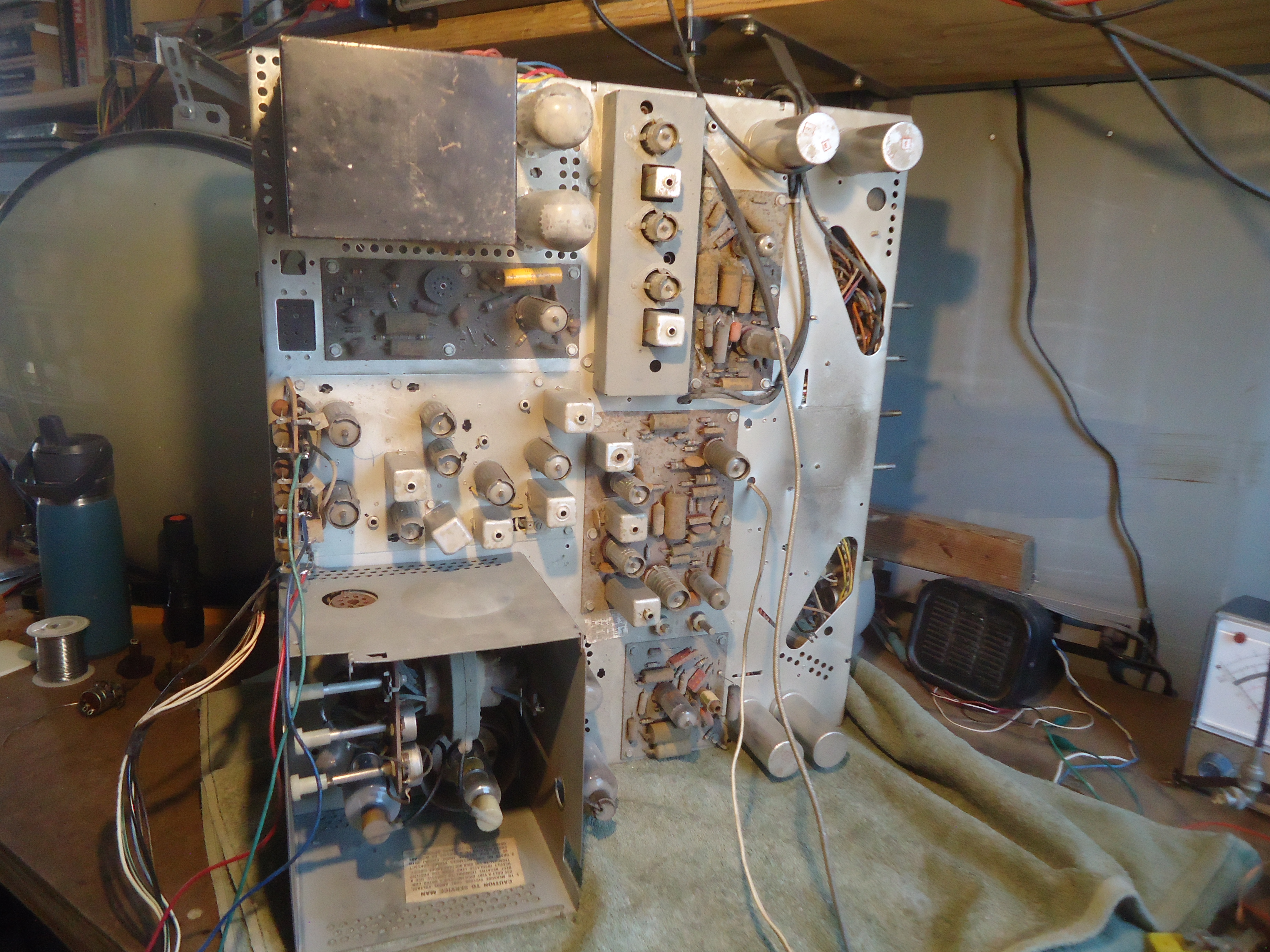 It’s on the bench. The “official” start of restoration begins. From Mike, It is on the bench. I will be connecting crt wires back to where they need to be and I will install the volume/on/off brightness control with a new switch unit. I will install missing tubes and fire it up to see “what we have got” for the beginning of restoration. Here we gooooooo!!! Mike https://visions4netjournal.com/wp-co.../DSC03101.jpeg https://visions4netjournal.com/wp-co.../DSC03102.jpeg