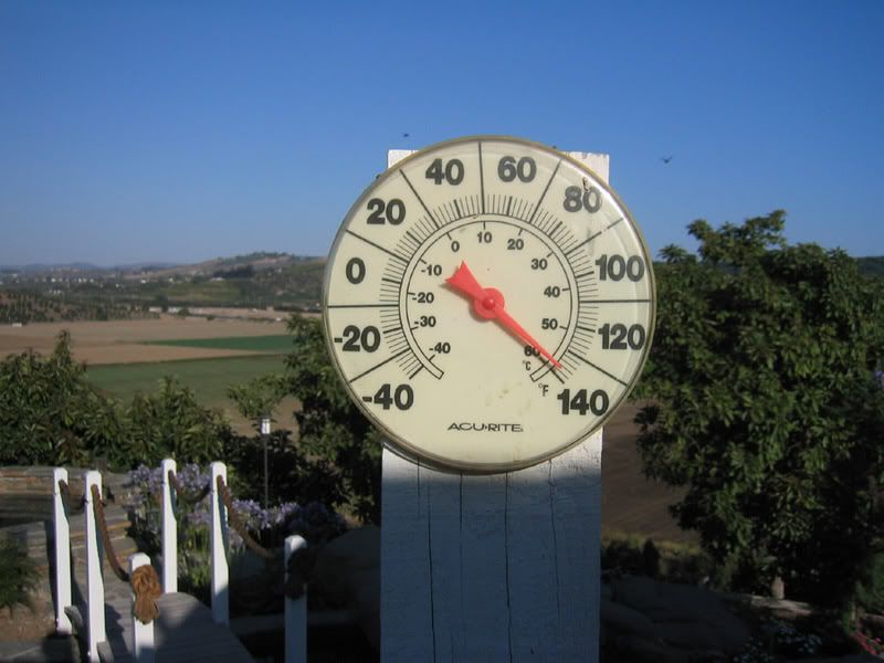 Only 105??? True, you're 5 miles closer to the ocean... How about Kay and I come spend the afternoon today at your place to enjoy the cooler atmosphere?