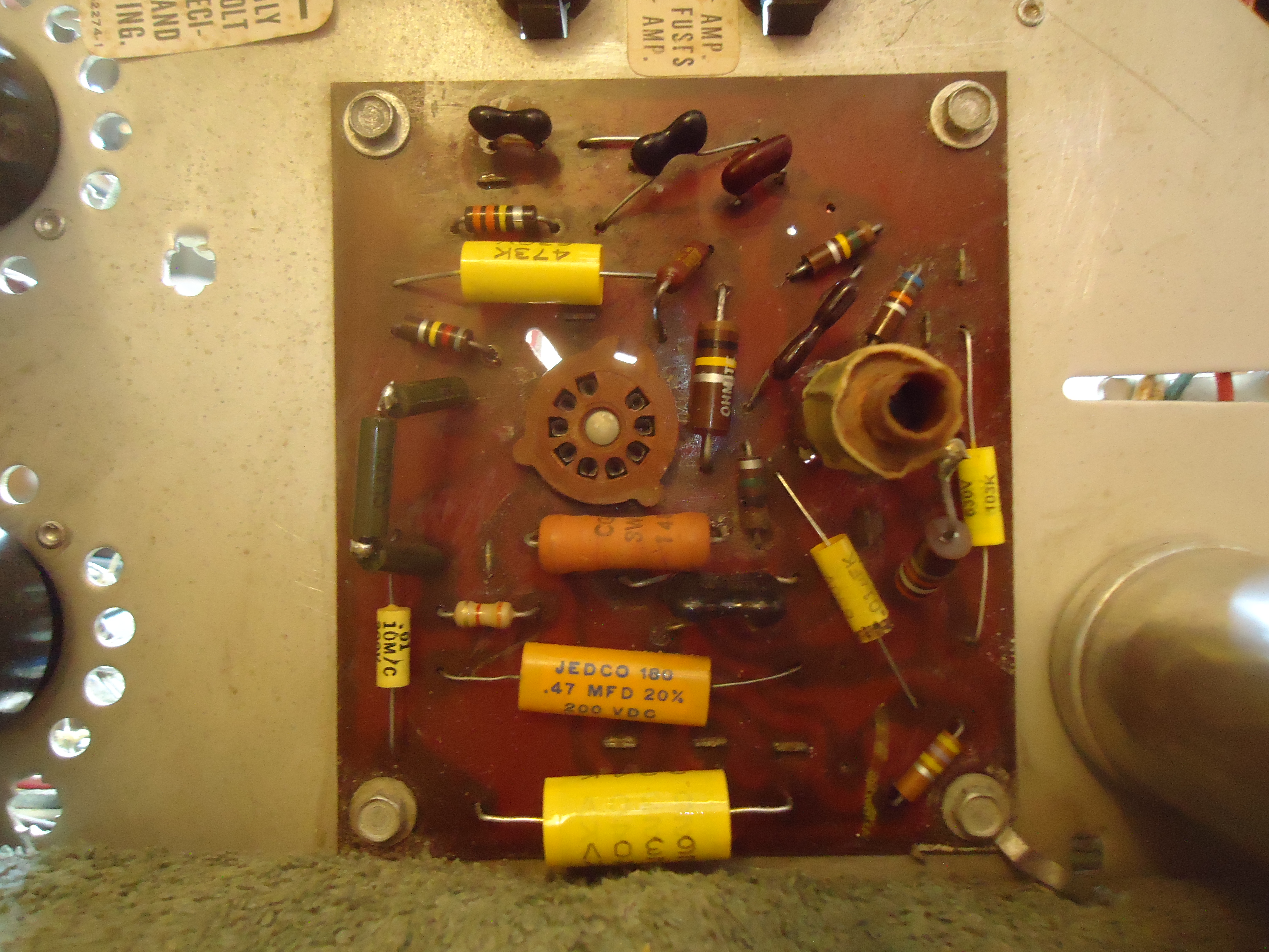 OK, I really do have High Voltage! My H.V. meter that has been very reliable for over 40 years lied to me! As I moved the schematic to a different part of the bench, I noticed the hair on my arm standing up when close to the CRT face. I swapped out the H.V. probe and it measured 16 KV. So, that is not enough, but good for now!! Pix 1 First image on this set for likely many years shows no sync, or maybe AGC issues. Hard to say. But I am going after the Horizontal Osc. board next. Pix 2 Parts removed. I replaced every part on this board except for the coil, which is obviously OK. All caps are new. Some resistors looked tired so they got replaced good or bad. Pix 3 Rebuilt Horizontal Osc. board. Pix 4. First good image with color. I still suspect maybe there is an AGC intermittent, but this is a milestone in the restoration process since it tells me a lot about the rest of the set. https://visions4netjournal.com/wp-co...3-no-sync.jpeg https://visions4netjournal.com/wp-co...sc.-board.jpeg https://visions4netjournal.com/wp-co...Rebuilt-2.jpeg https://visions4netjournal.com/wp-co...ood-image.jpeg There is still a lot of work to be done. I installed 2 brand new 5U4 tubes and the power supply voltages are now what they should be. I have tested all of the tubes and found several weak ones and they have been replaced. There are a number of controls that have issues and I am not sure if cleaning them will help. Most of them have to do with convergence. I may be facing some rebuilding of controls like I did with the volume/brightness/switch unit. Time will tell. Next, I plan on going after the Sync/AGC/Sound I.F. section. Even though the High Voltage is low, I am not too concerned with that for now. It should be 22KV. Onward, Mike
