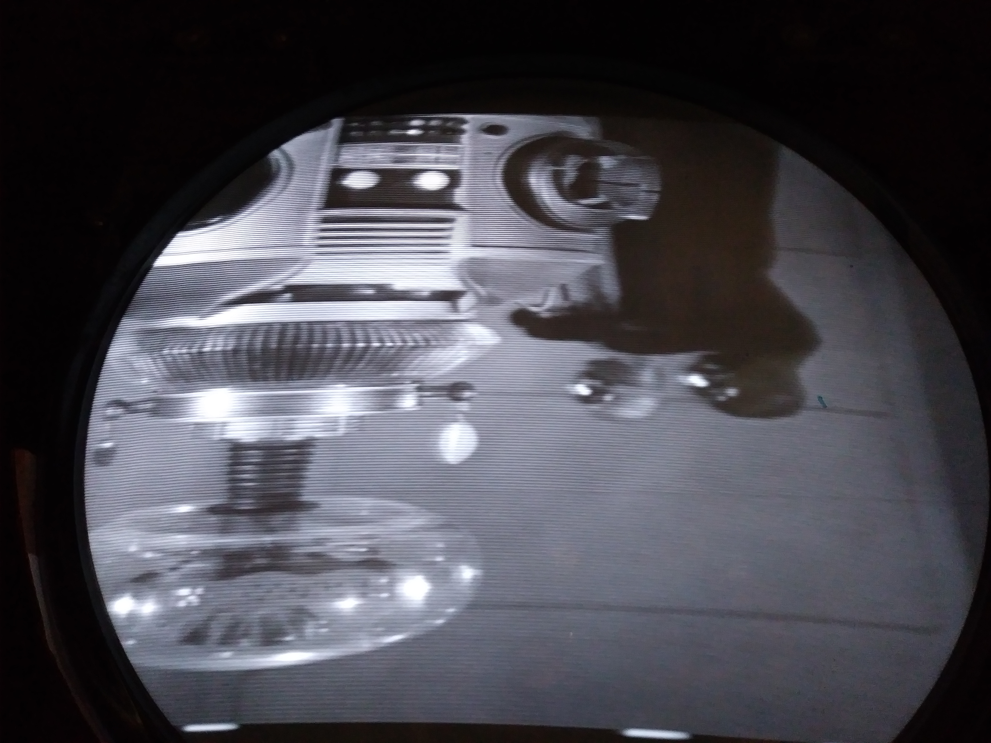 C: Width and linearity. Adjust the width control (located in the upper corner of HV box) so picture fills screen bezel. Then adjust horizontal drive and linearity for proper width and linearity of picture. It mentions "horizontal drive" but as mentioned before, there is no such adjustment, so before I mess with the horizontal speed adjustment or horizontal lock again, I'm going to see what happens when the Width and linearity core is tuned, the linearity, being on the cathode of the damper tied to 3 caps.