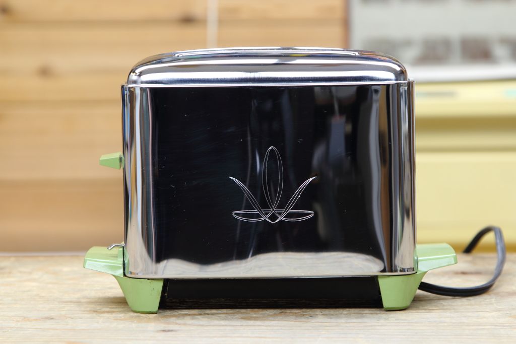 I'm at the Value Village and on the shelf is a fancy looking green handled chrome toaster. It looks like it was barely used.