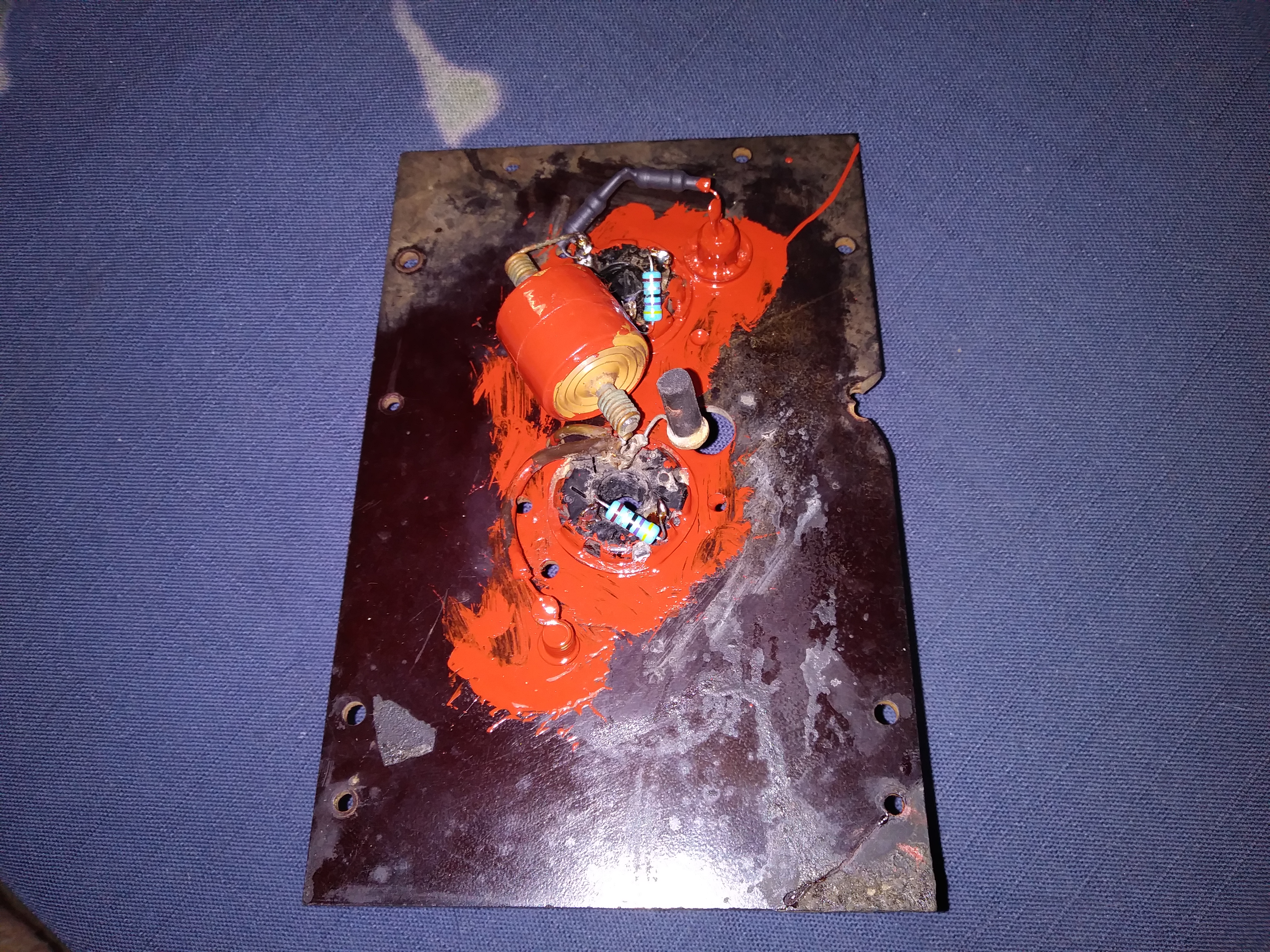 The HV doubler circuit before having the old resistors replaced, lot of bad solder work