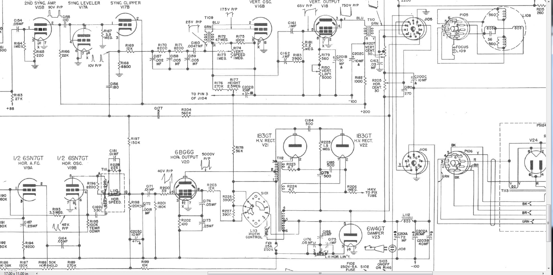 The vertical oscillator is NOT running, and from what I see it can't If I understand things correctly, the OSC gets power ( T109, V16B) via boost through