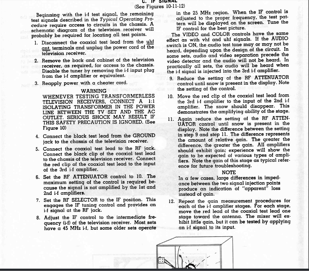 this is taken from the b&k precision 1077b television analyst manual, it's for the most part what you are doing to debug the IF