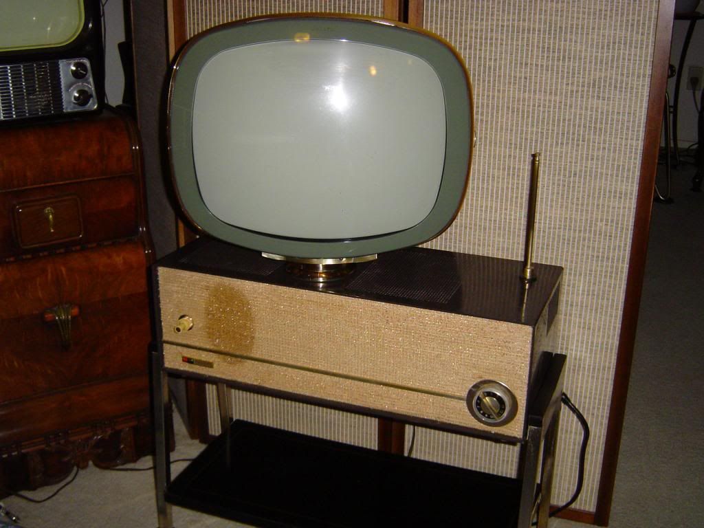 This 1959 17" Philco Predicta "Debutante" and matching stand was recently unearthed from years of storage. It needed lots of cleaning, polishing, and detailing to get it to where it is now. It also needed and antenna and replacement back panel. Upon it's chassis restoration it was discovered that it needed a new CRT. I was almost going to pass on it, but now I'm glad I didn't. It works great and who doesn't love the modern "space-age" look of these classics?!