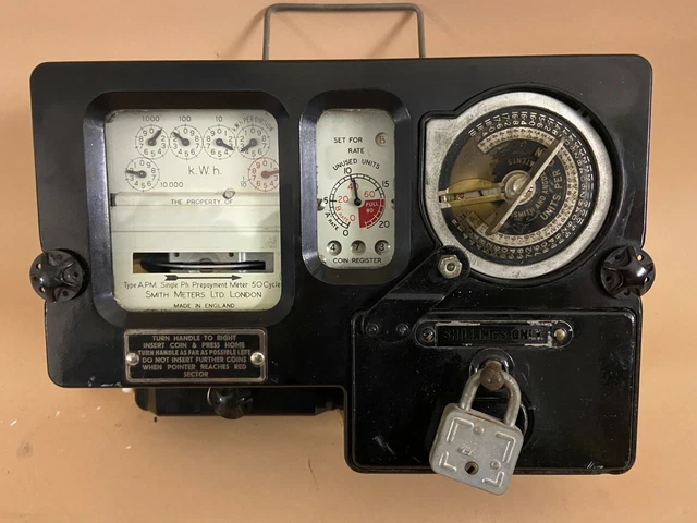 I guess back in the day in some regions the electric company would supply a master meter for one building or a group of buildings and if the landlord wanted to rent out the spaces wired to the master meter separately but either the rental times were very short or they didn't trust the tenants to pay the bill they could install these in each location. You set the cost per kilowatt unit and then you just fed money into the meter to keep the lights on. Later versions used stripe cards then it was chip/RFID cards that could be topped up. They are also apparently not well loved because often the landlord would bill at a rate notably higher than what the utility company was billing the landlord.
